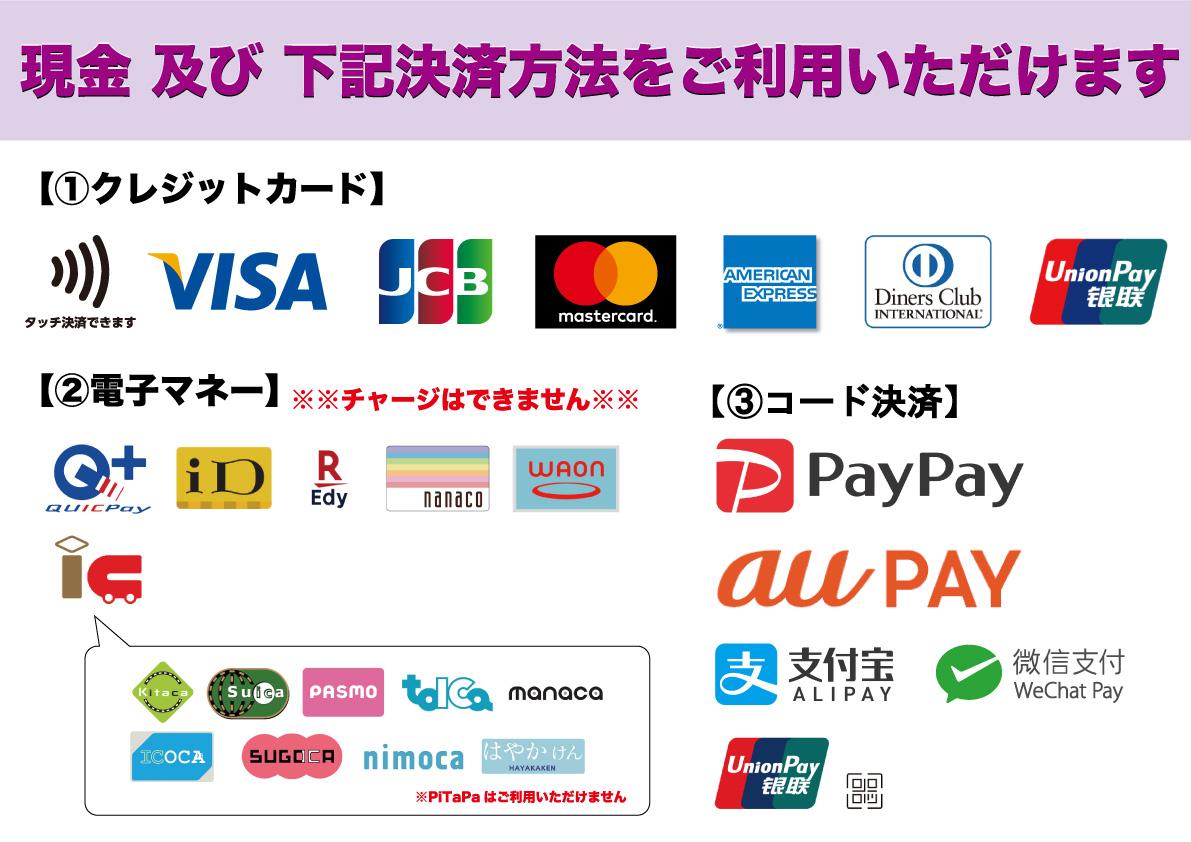 ※Wi-Fi環境によっては、決済にお時間をいただく場合やお取り扱いを中止させていただく場合がございますので、予めご了承ください。
